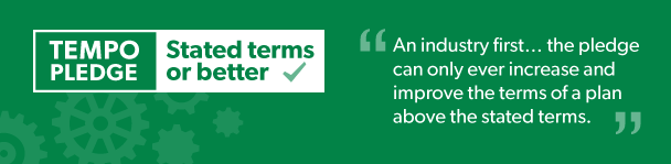 At the end of 2019, we introduced an innovative and unique feature – and an important industry first – to all our plans: the Tempo pledge: ‘Stated terms or better‘.